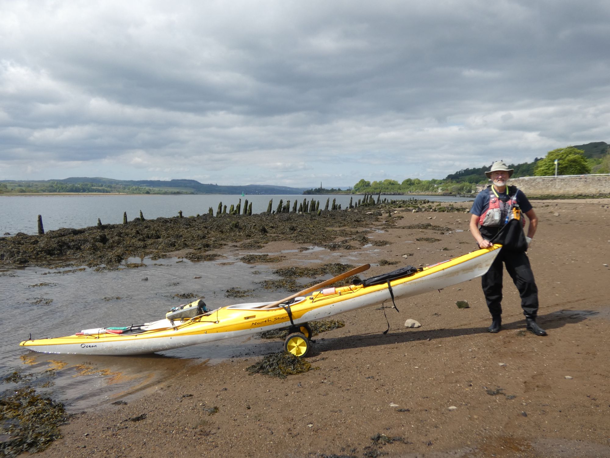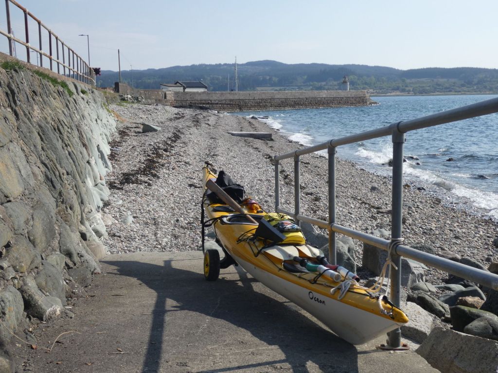 I landed my kayak on a pebble beach to the south of the canal entrance, pulled it up a ramp, and tied it to the railing.