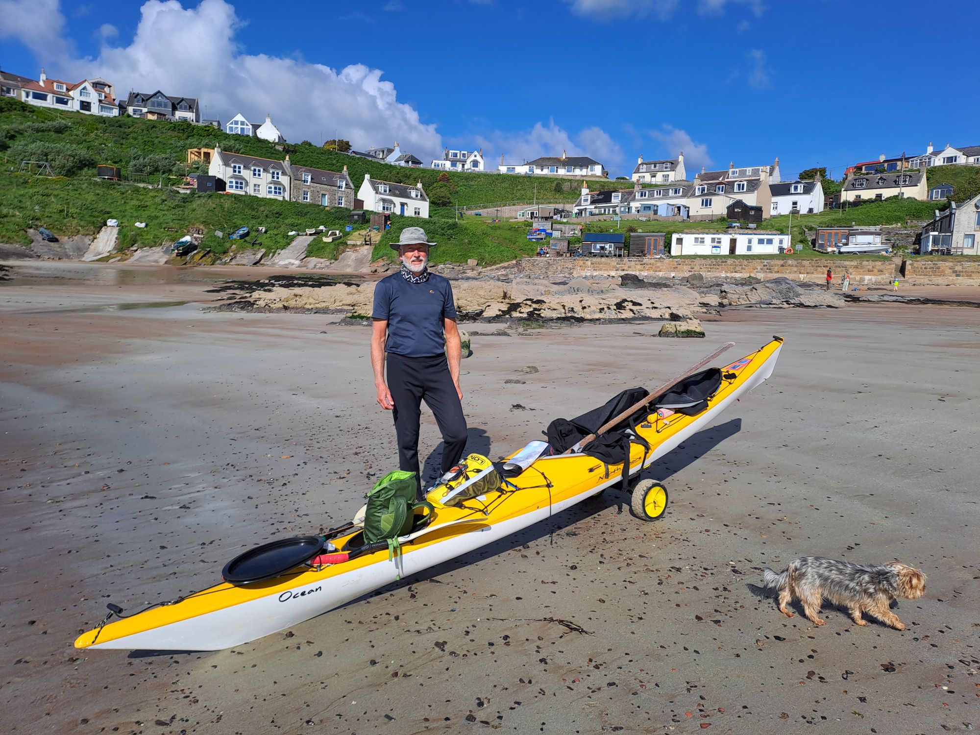 As I prepared my kayak on the beach, Craig, a long-time Collieston resident (but not yet “local”), and his little dog kept me company. He pointed out the house which T. E. Lawrence had rented by the sea and referred to as “the nearest hovel to the high-tide mark.” Apparently, he would ride his motorcycle in the same carefree manner here as he did when he was later fatally injured in an accident in Dorset.