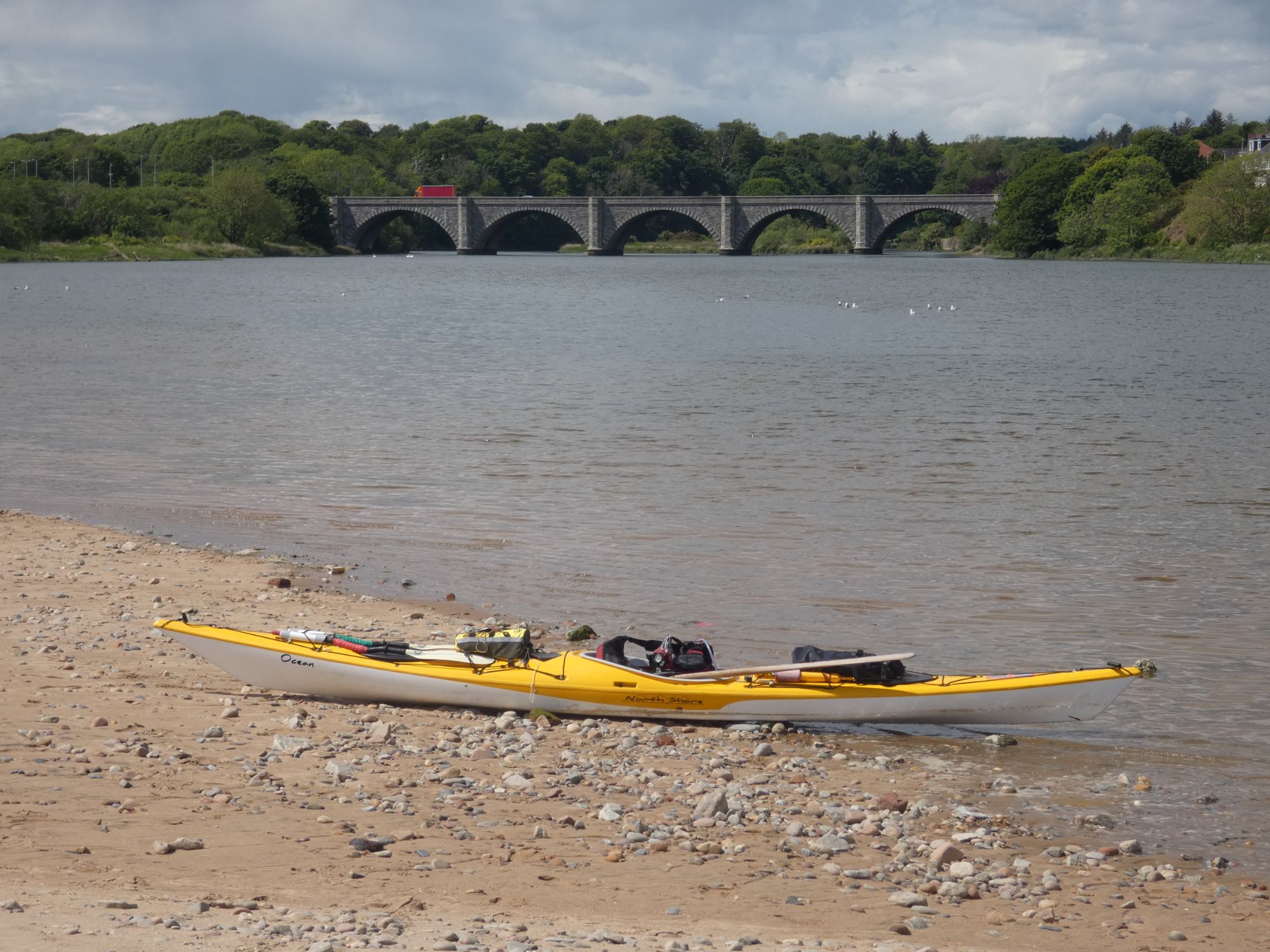 As there was a small dumping surf all along this coast, I took the opportunity to enter the mouth of the river Don and seek a surf free exit for my lunch break. A man out on his regular dog walk persuaded me that a short detour further up the river to Scotland’s oldest bridge was well worth the effort. It was.