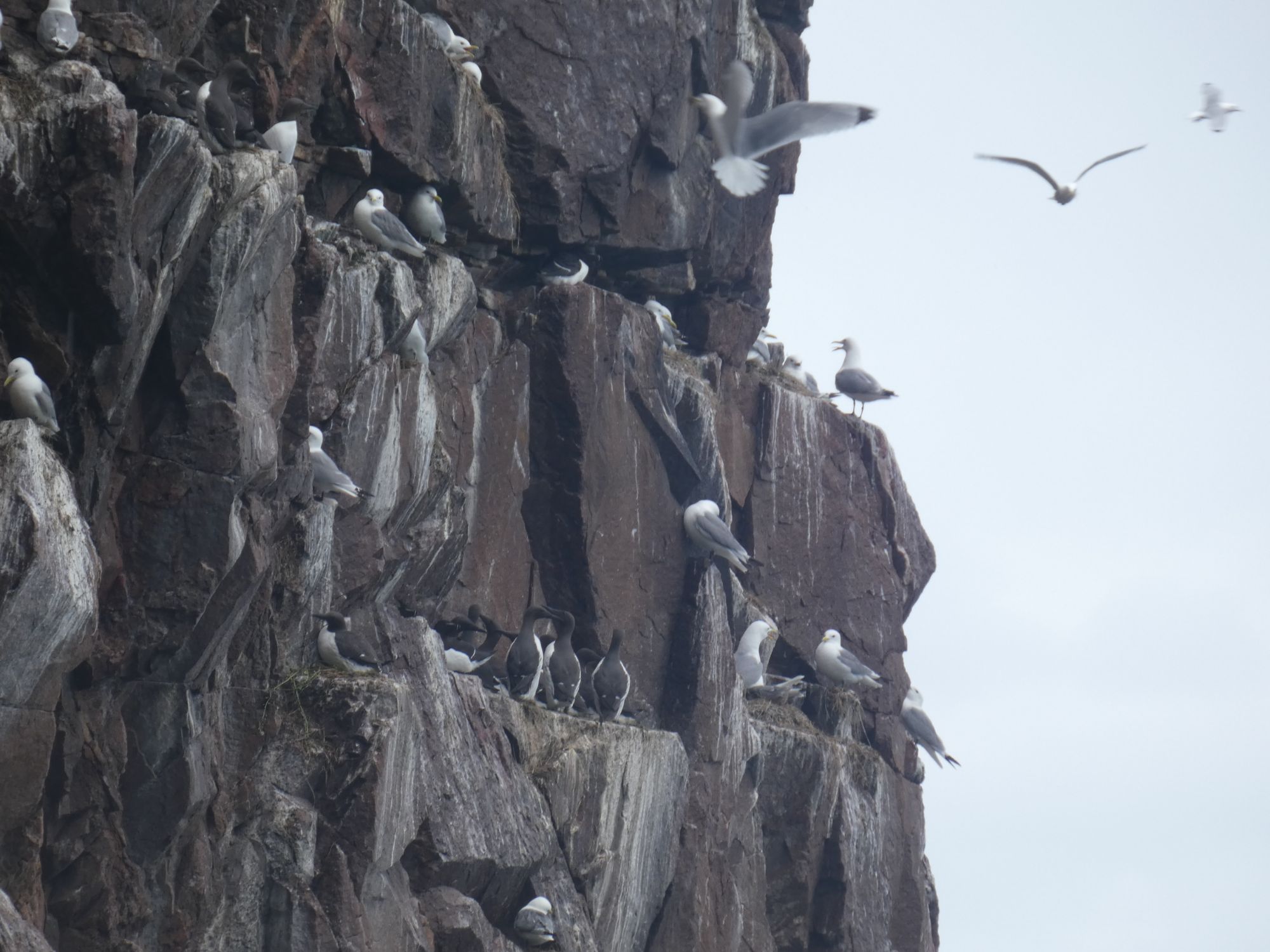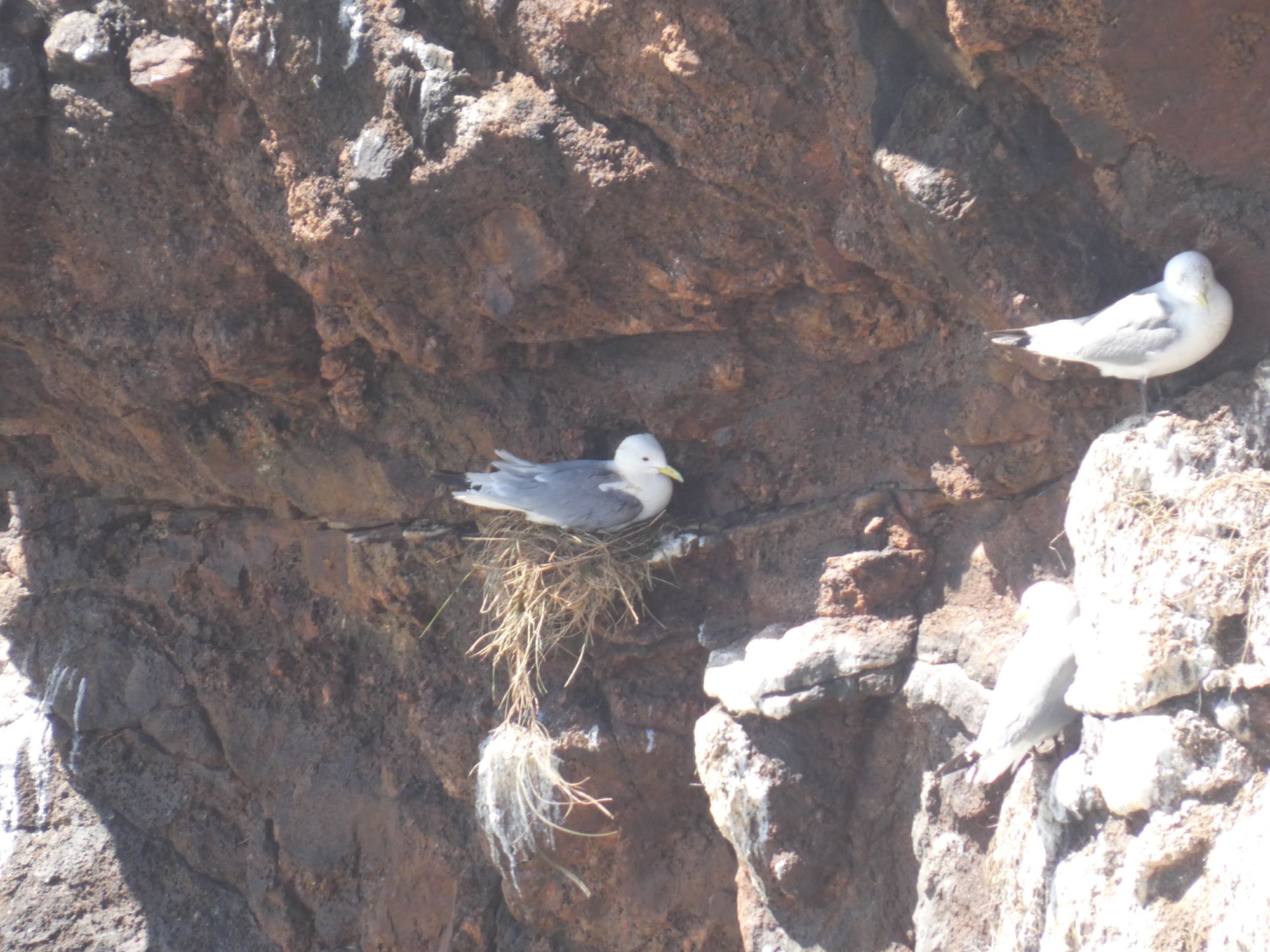 Is this the 3/4 mile long cave Jim mentioned?No further than 50 metres for meWhite eyed monster lurks within! (Just two seabirds, really)Caves dot this coastRed streak