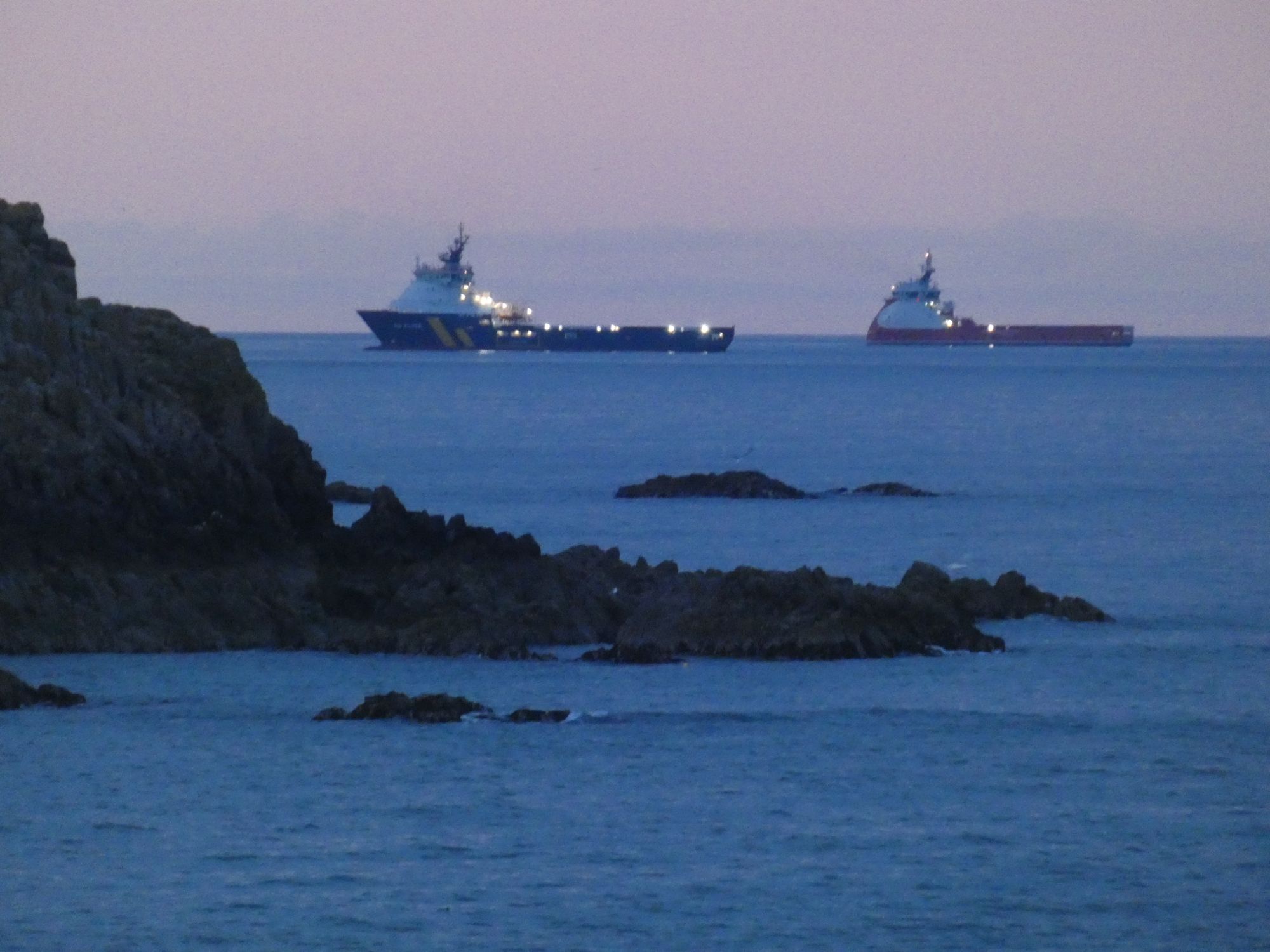 A calm Cove Bay HarbourThe tops of the platform legs currently at the Nigg Bay siteSupply vessels standing off from Aberdeen Harbour