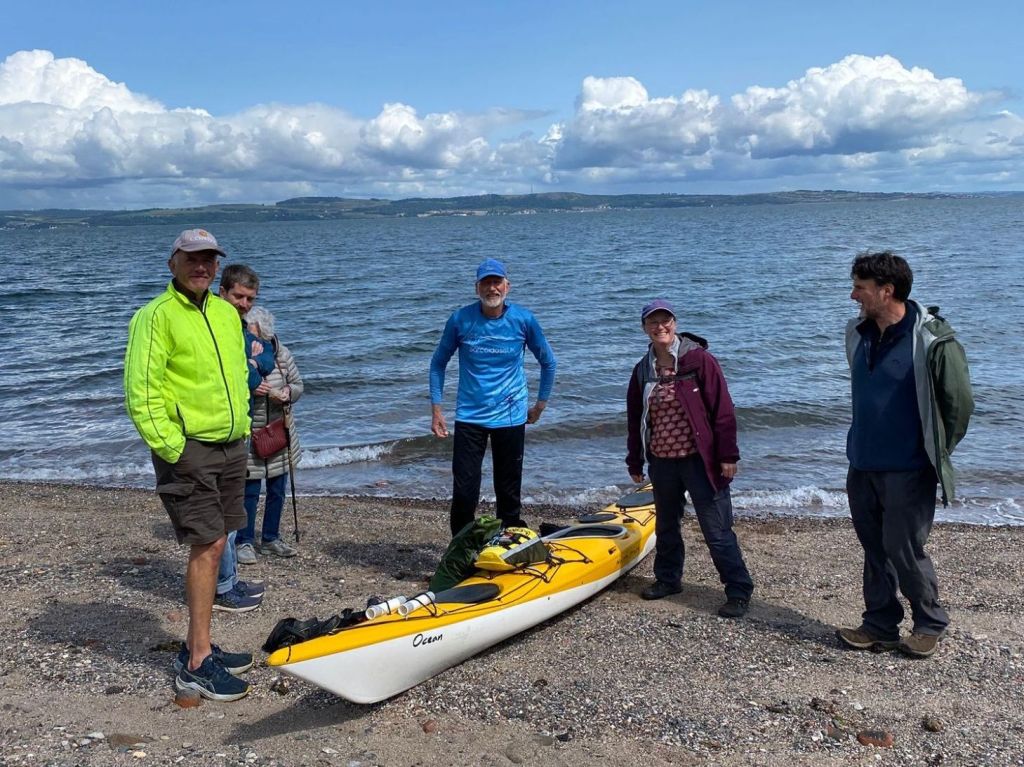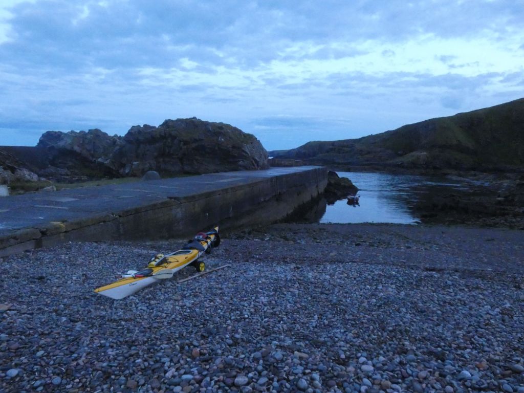I set up camp at the mouth of the Bervie River opposite Inverbervie. I crossed the river and was met by my brother, Ian, and his wife, Fiona, who were in Scotland on holiday. They’d travelled a considerable distance to come and see how I was getting on and treat me to dinner at the excellent fish restaurant in nearby Gourdon. A great end to a good day of paddling (that’s using a paddle to propel a boat, and not wading calf deep in water with your trousers rolled up, as my sister-in-law likes to imagine it).