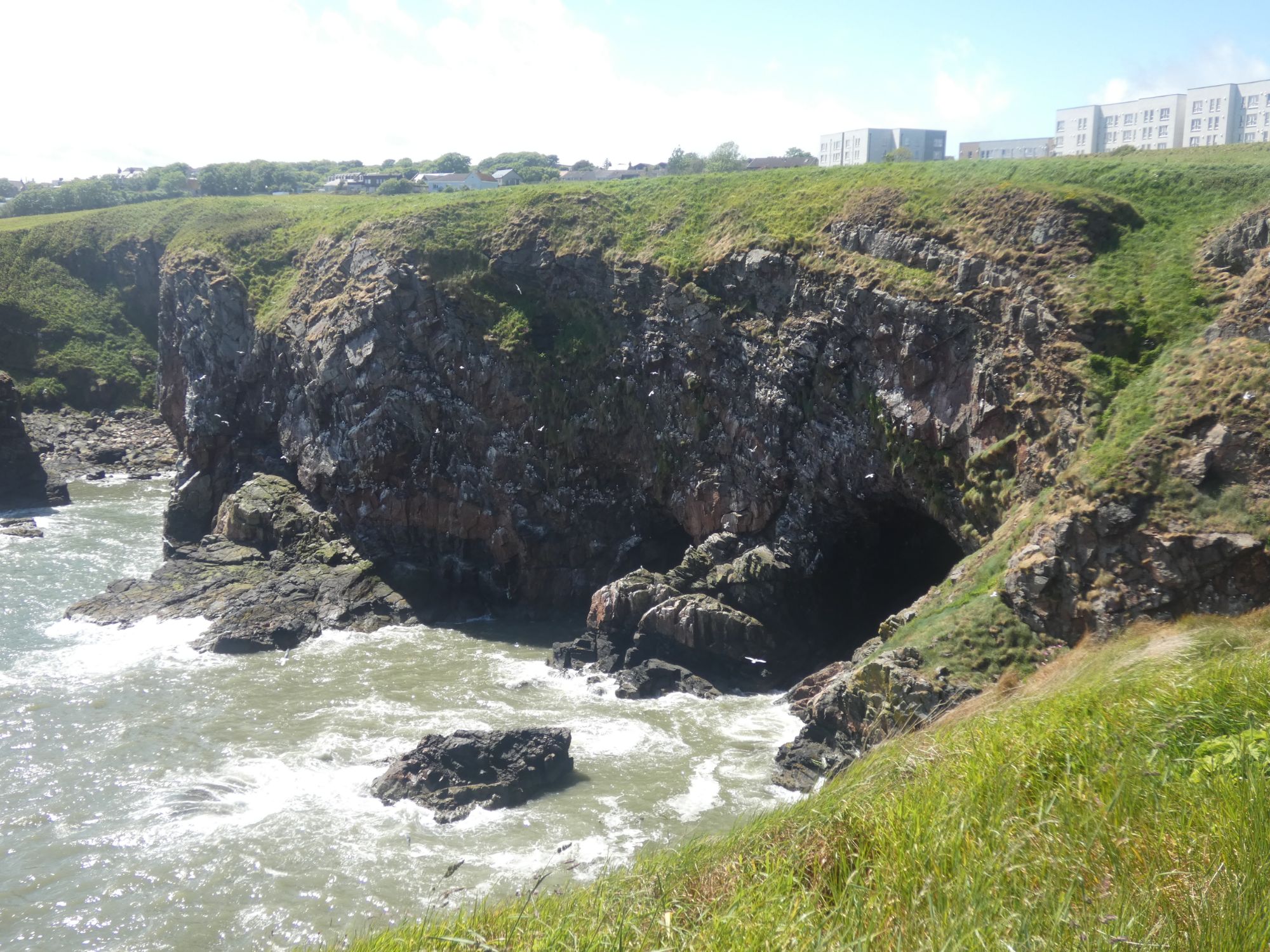 In the cliffs closer to Inverbervie, large numbers of seabirds take advantage of these pockmarked cliffs to locate their nests.