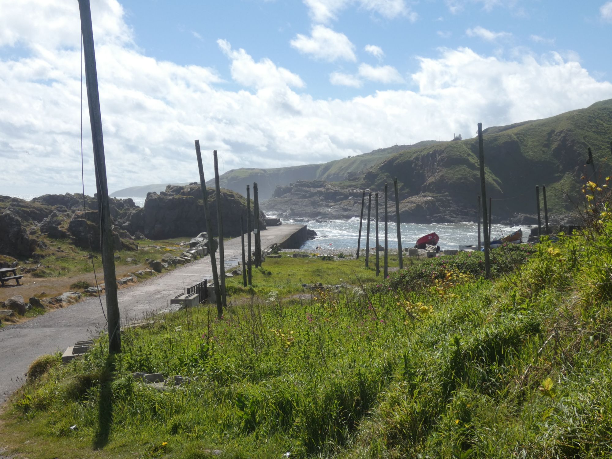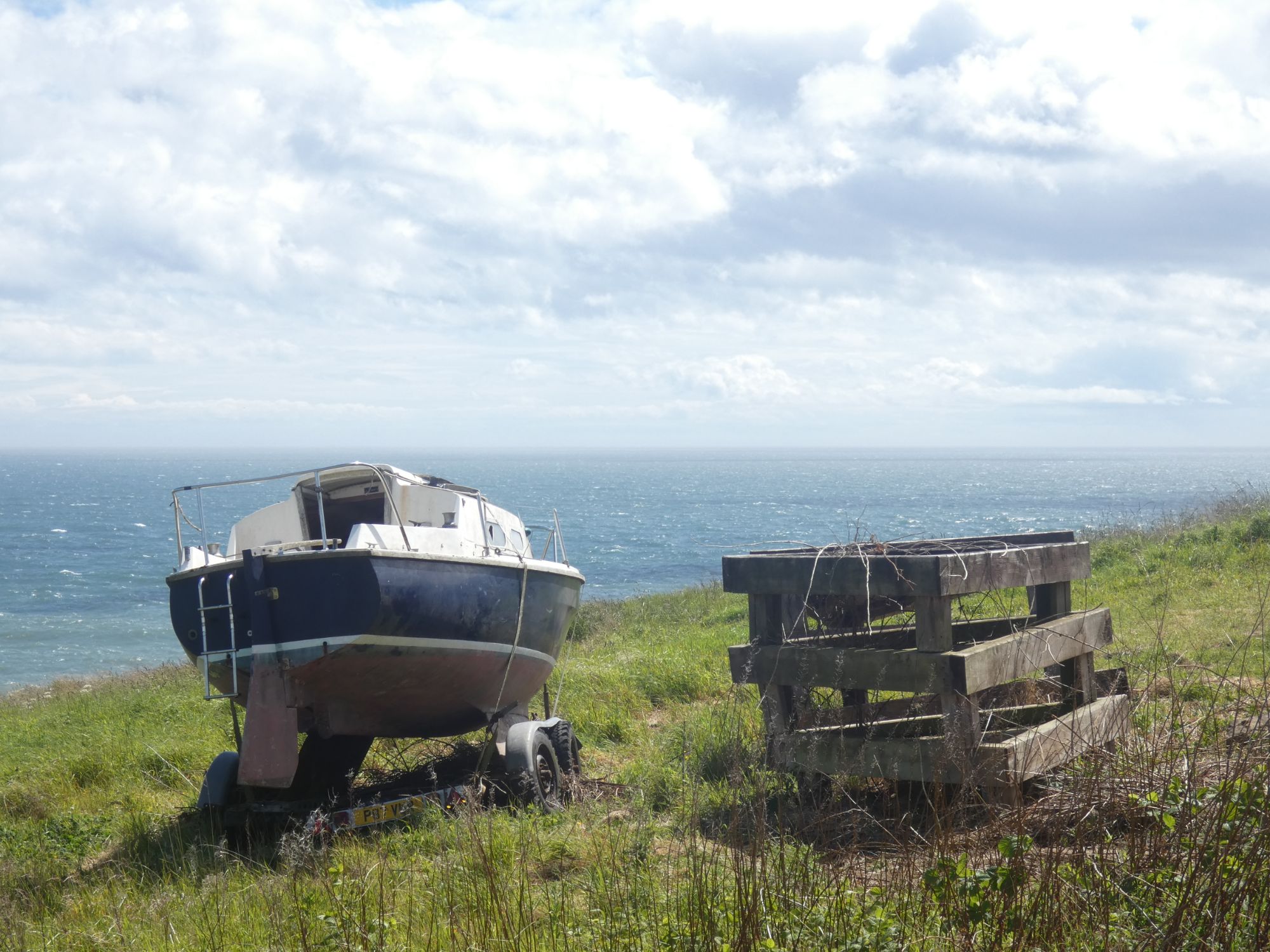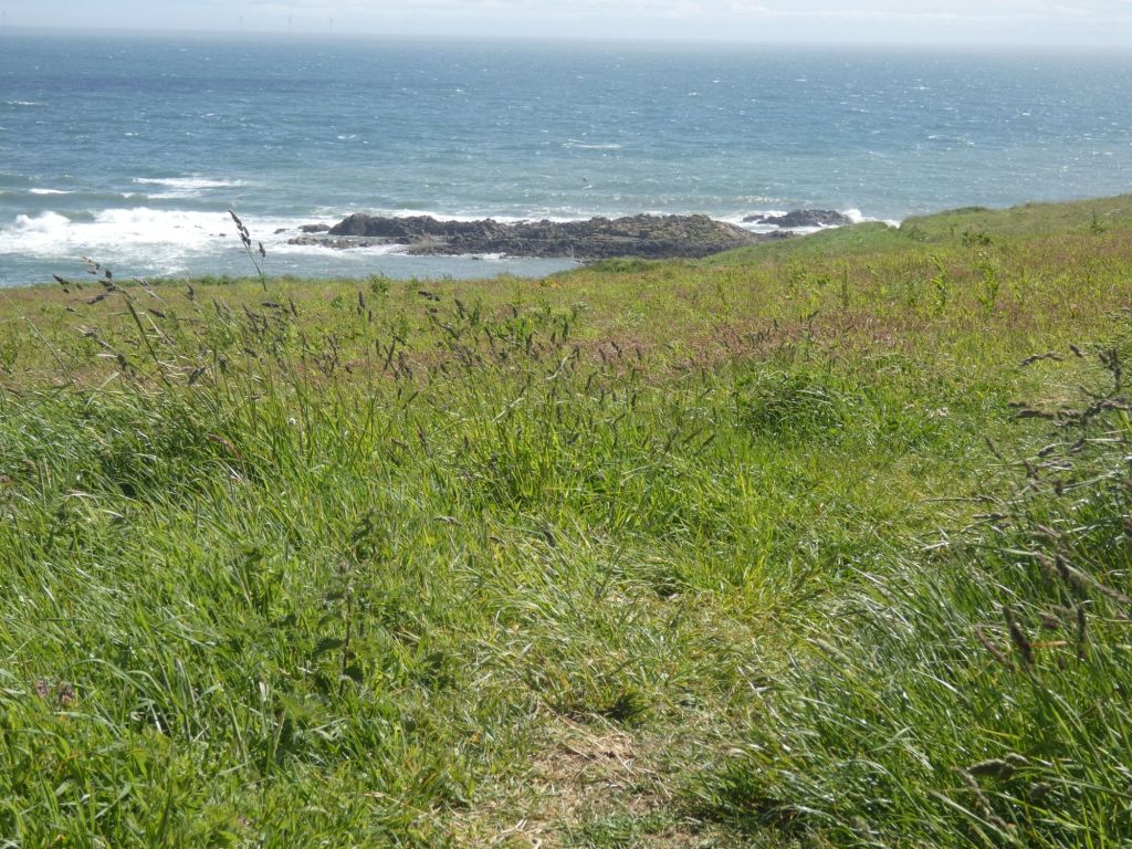 I stopped at the natural harbour of Portlethen, where small fishing boats are still hauled up the steep grassy slope by winch.