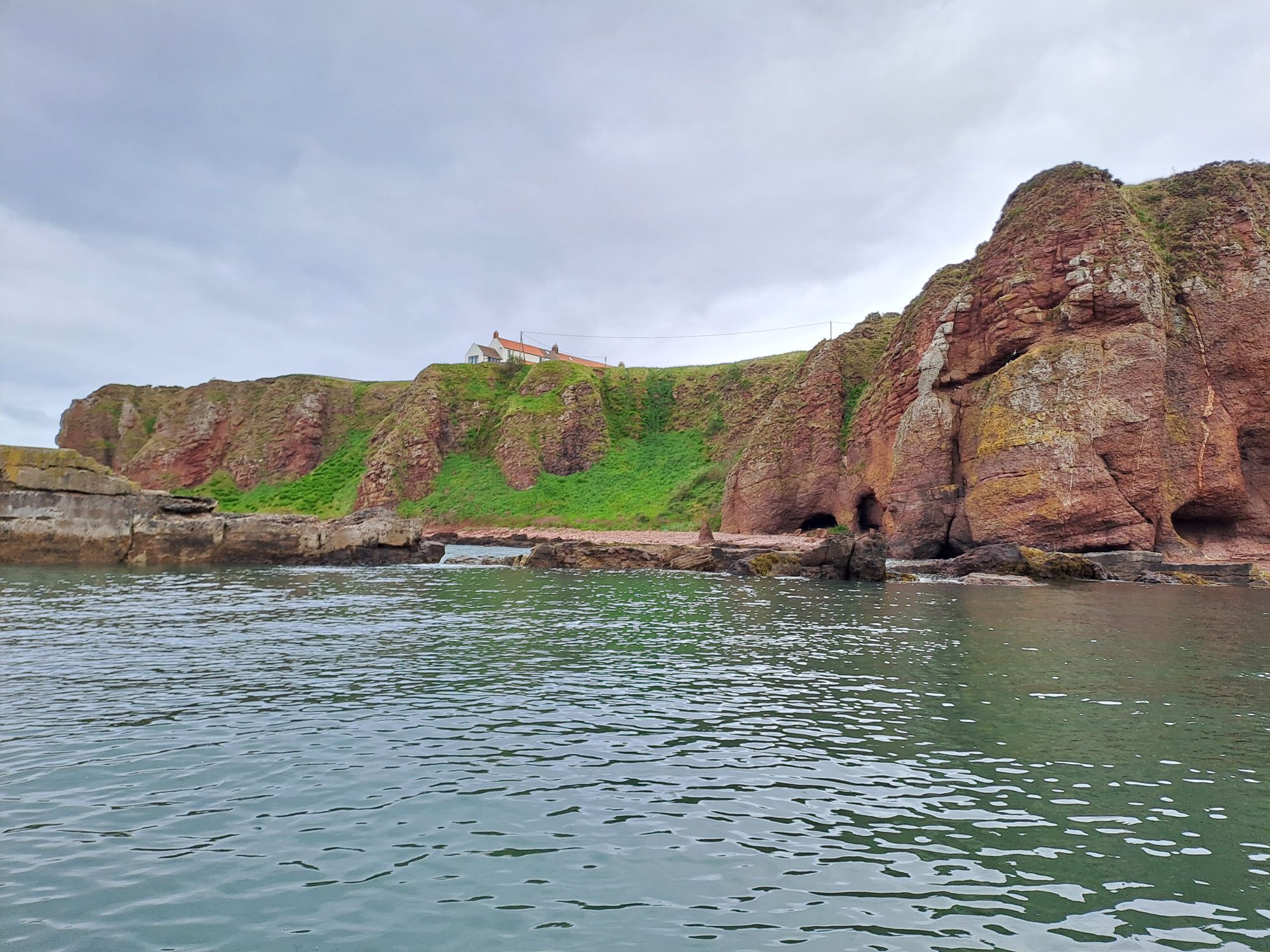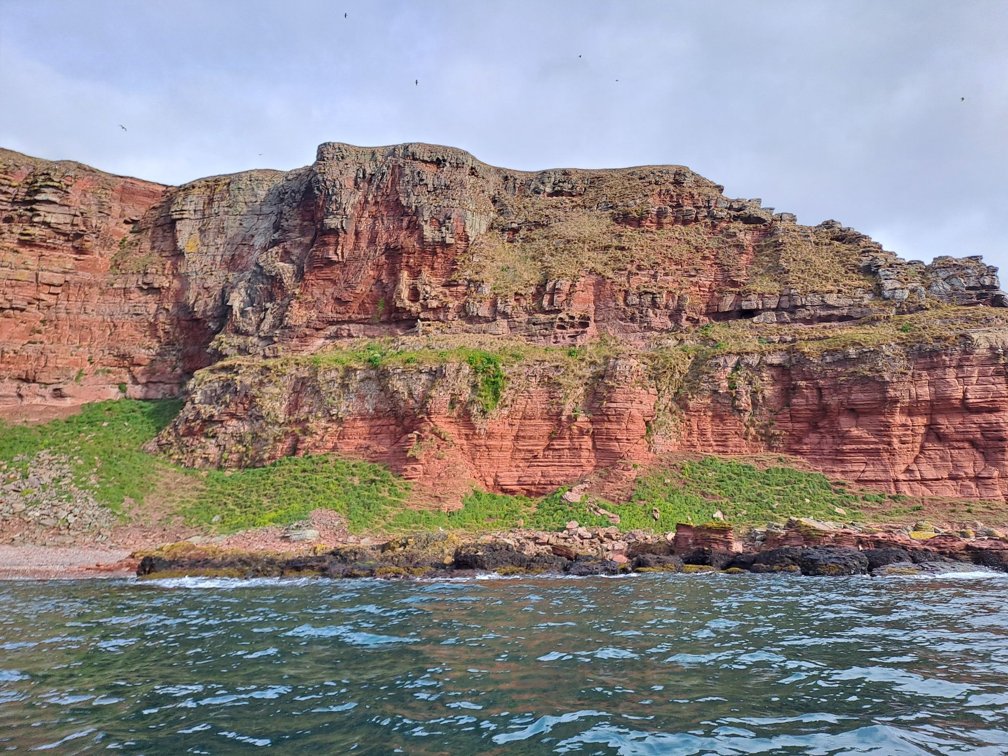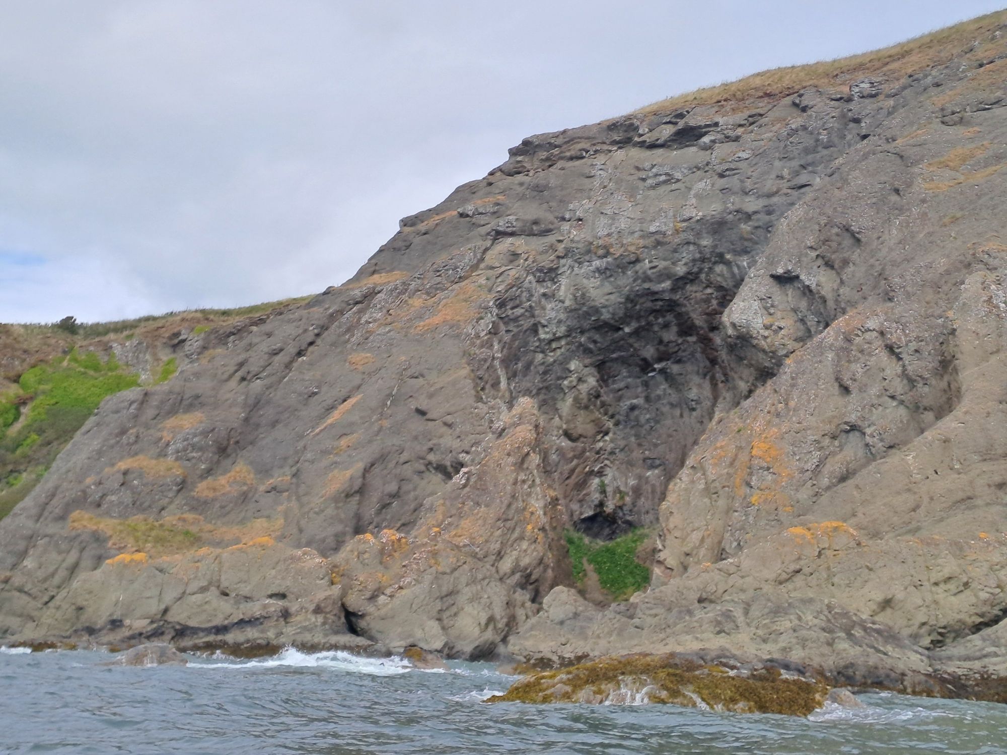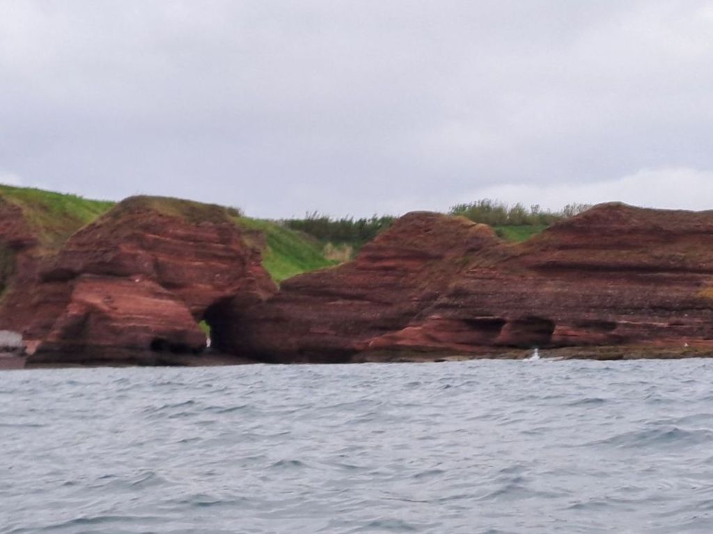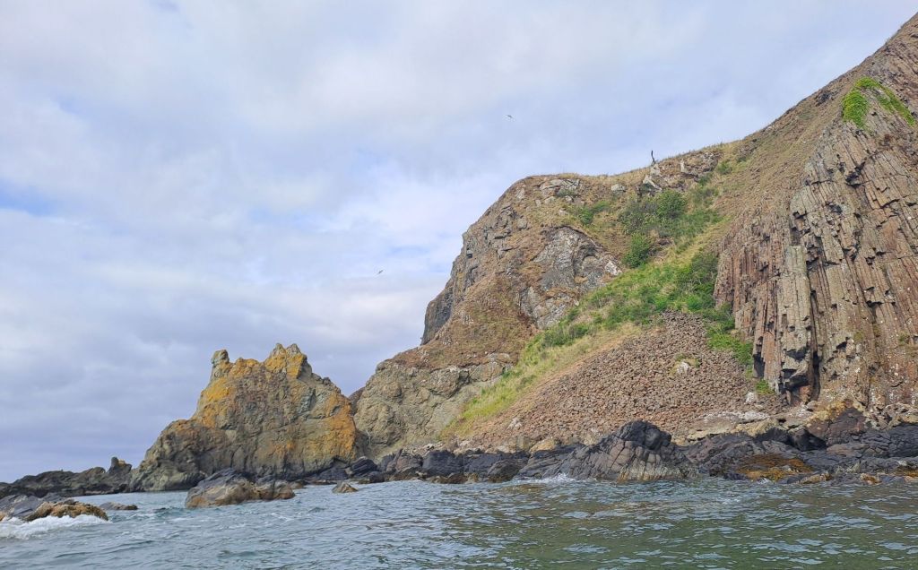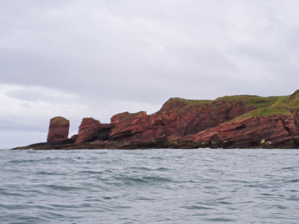 The last section of cliffs after the Deil’s Head were the exception, and the clapotis was quite substantial. It was here that a small pod of dolphin, heading north, swam past. There was no possibility of getting my phone out to snap some photos as I needed my hands on the paddle.