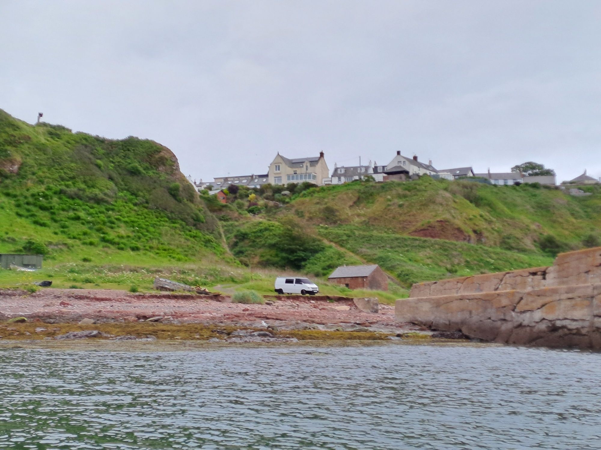 The weather today wasn’t a whole lot better than yesterday, and it was touch and go on whether I’d give paddling a go or not. I felt well rested from my two nights in a bed, and the sun was shining, so Wendy and Jane helped me and boat return to Crail Harbour.