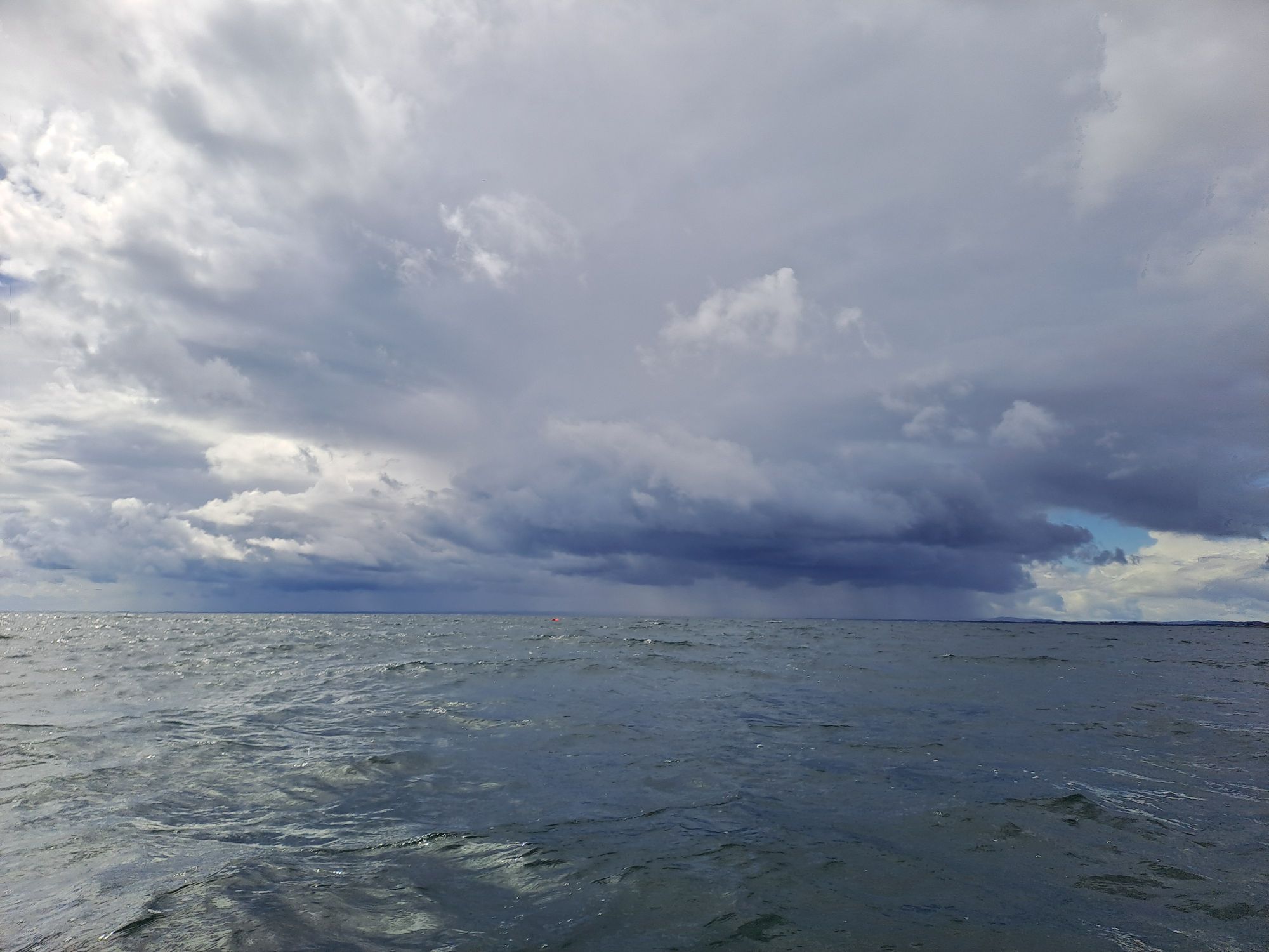 When I exited the harbour, I could see the shore south of the Tay and picked a point to head for. I was on a bearing of 210 degrees, getting slowly further from the northern shore. If the wind did pick up, I could always change my course more westerly to regain the shore. I was going to maintain my course until I was due north of the eastern end of the substantial sandbar on the southern side of Tay Estuary and then head south.