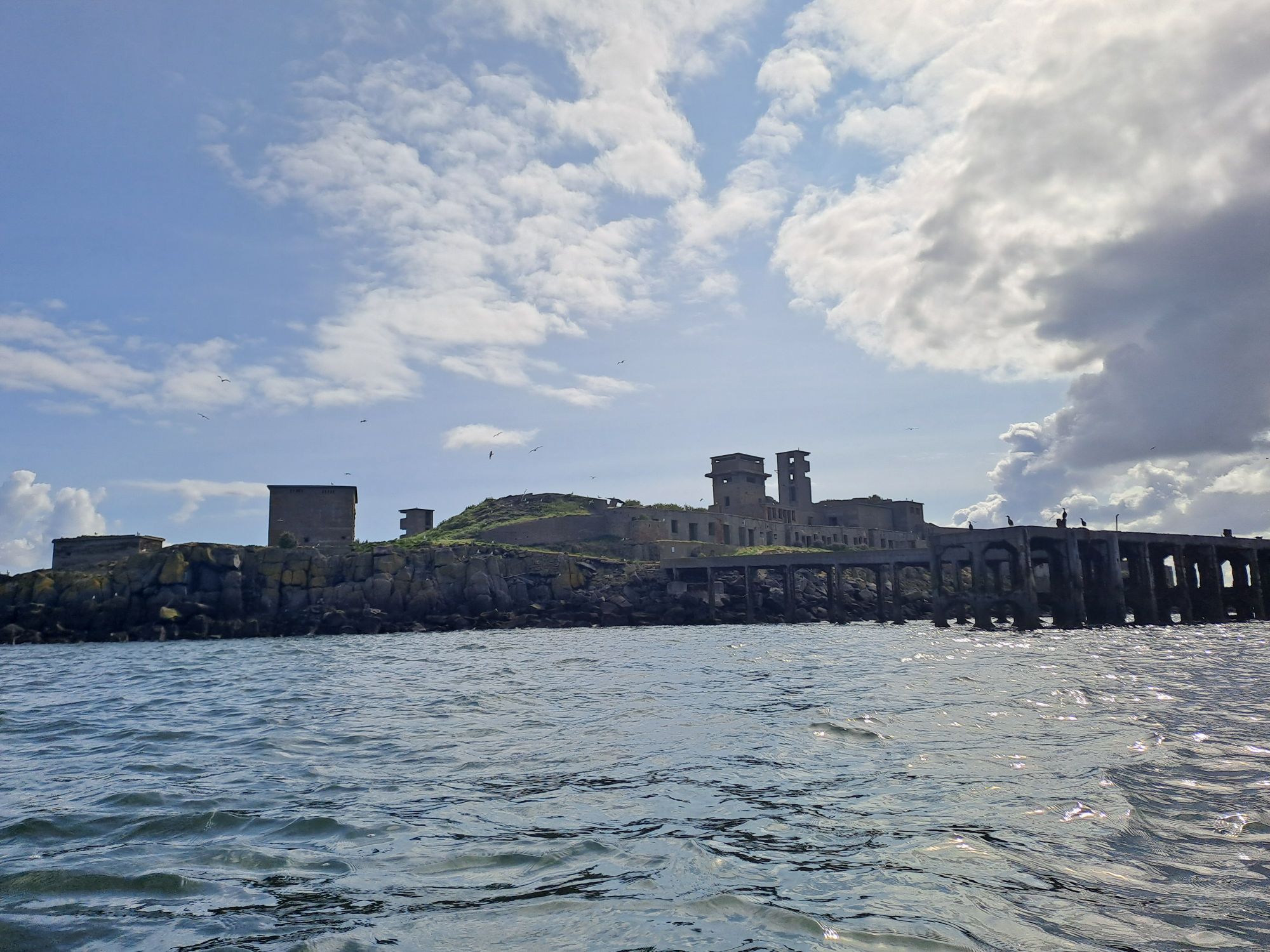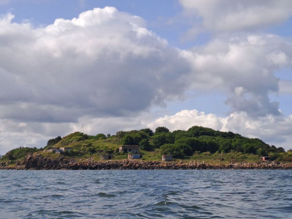 Safely across the channel with Oxcars still aligned with the west end of Inchmickery Inchmickery from the northIncmickery from the southwest