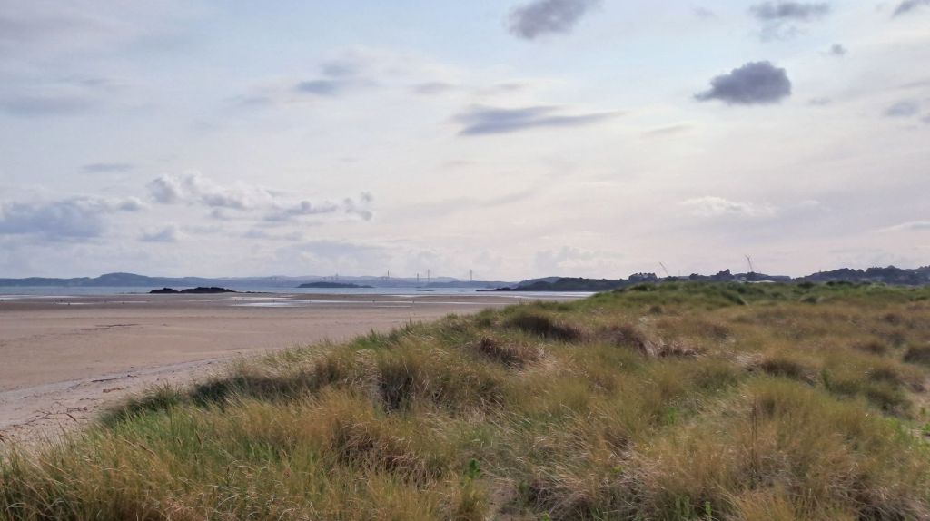 Burntisland Sands with bridges in the distanceEdinburgh from Burntisland Sands