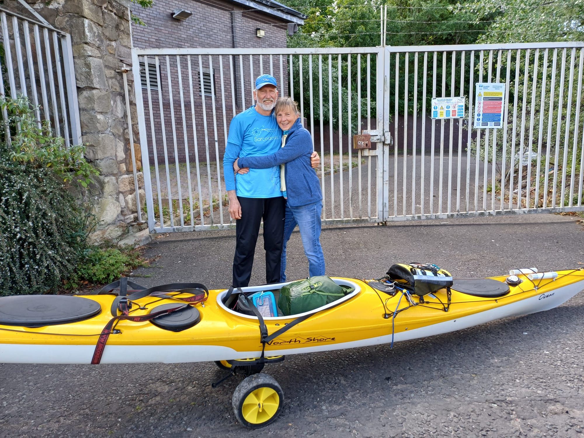 The last few paddle strokesAll the paddling completedWith my mum and some of the welcoming partyPlus Adrian – a big assist for the final portageA big hug from Wendy before starting the portage homeCeremonial turning off of Spot tracker for last time