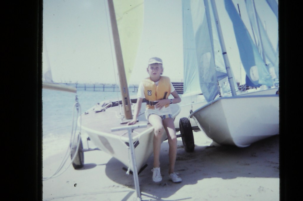 My dad had a small sailing dinghy when he was a lad growing up on the south coast of England, so it wasn’t long before I was helping him paint and varnish a second hand OK dingy on our front lawn.